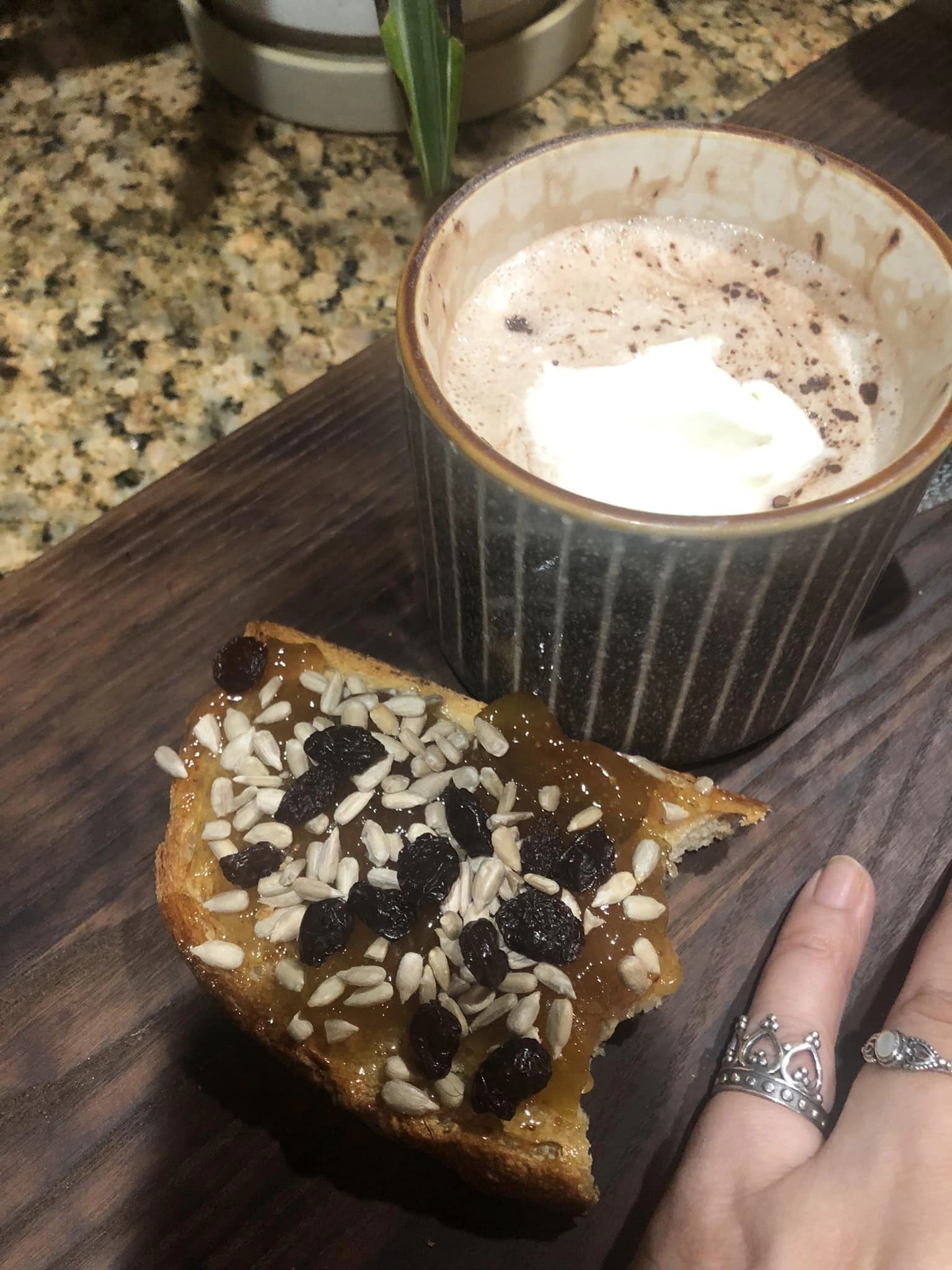 Huma’s Hot Chocolate Frappe with Sunny Fig Desert Toast