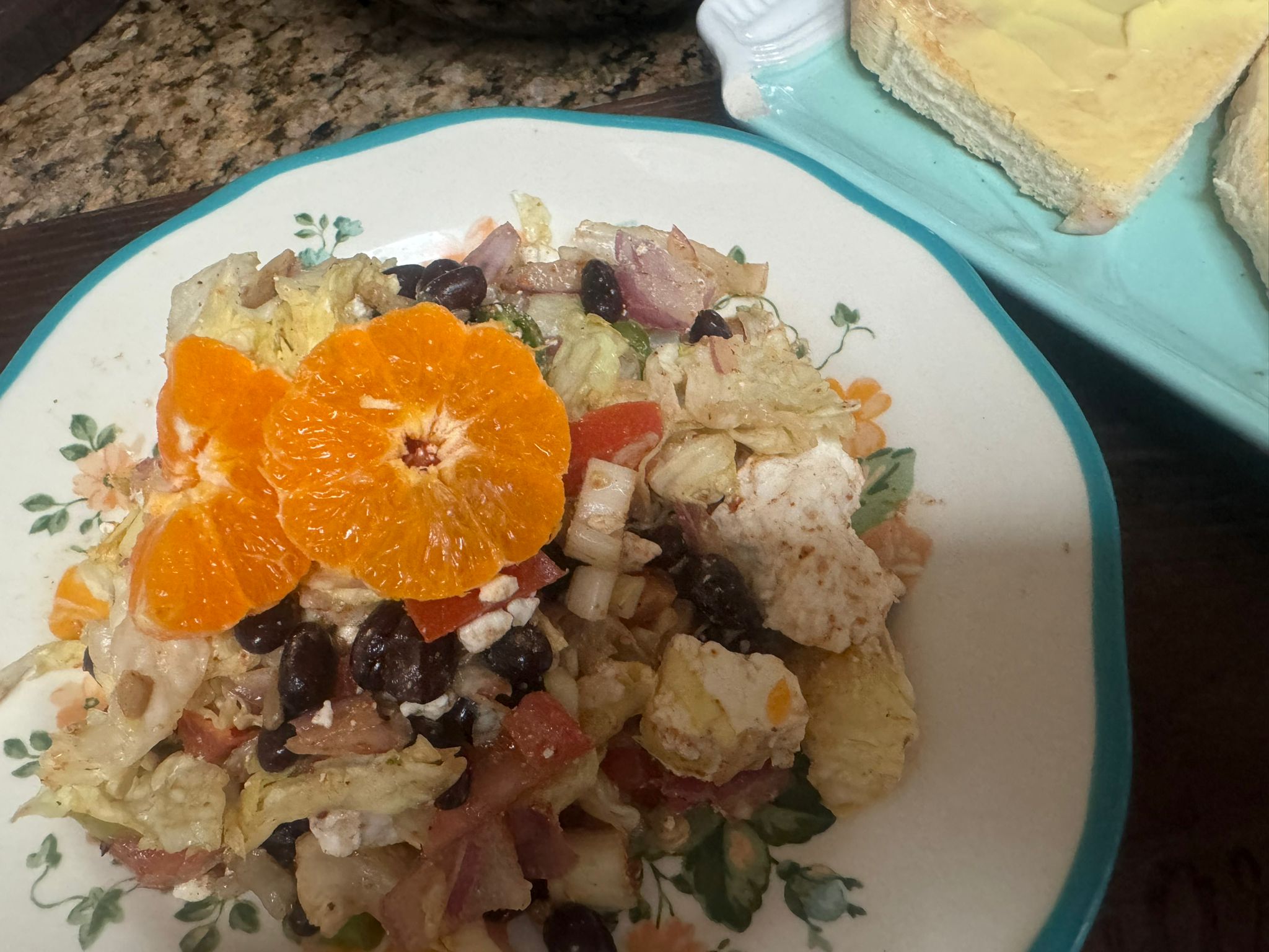 | - Toss the salad lightly once more to distribute the orange juice. |